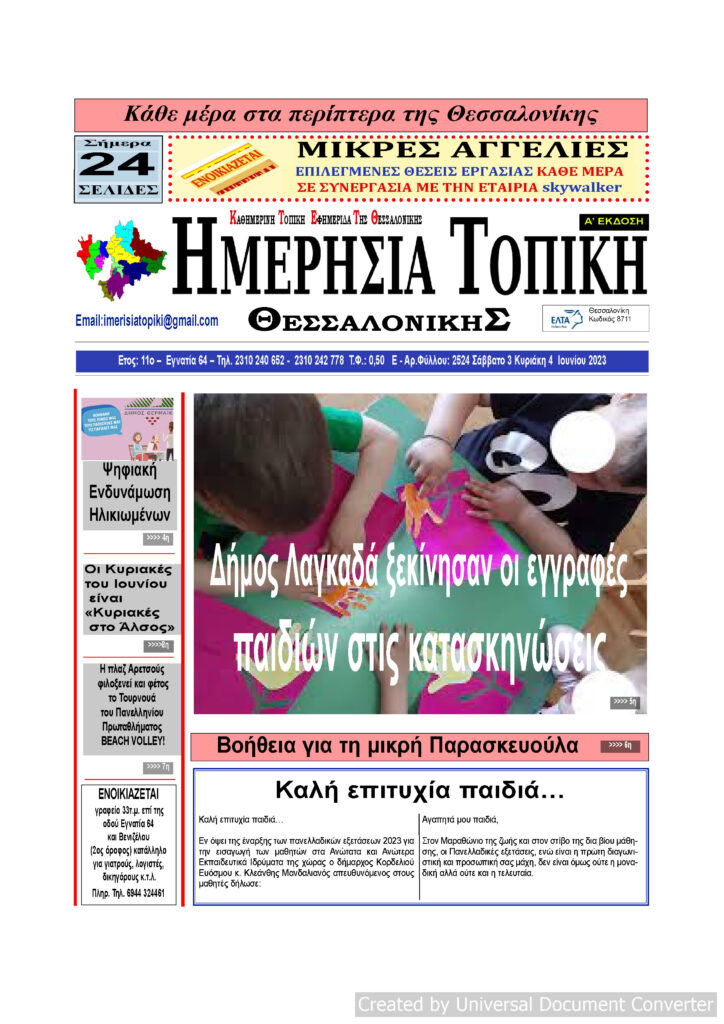 Αρχική ΘΕΣΣΑΛΟΝΙΚΗ Πρωτοσέλιδο Ημερήσια Τοπική 03-04/06/23 ΘΕΣΣΑΛΟΝΙΚΗΤΟΠΙΚΗ ΠΡΩΤΟΣΕΛΙΔΑ Πρωτοσέλιδο Ημερήσια Τοπική 03-04/06/23 Από ΜΑΡΙΑ ΓΙΑΝΝΕΛΟΥ - 7 Ιουνίου 2023 120 0 FacebookTwitterPinterestWhatsApp
