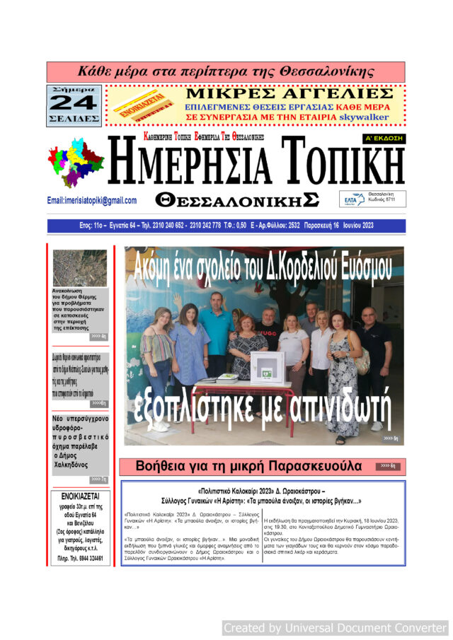 Αρχική ΘΕΣΣΑΛΟΝΙΚΗ Πρωτοσέλιδο Ημερήσια Τοπική 16/06/23 ΘΕΣΣΑΛΟΝΙΚΗΤΟΠΙΚΗ ΠΡΩΤΟΣΕΛΙΔΑ Πρωτοσέλιδο Ημερήσια Τοπική 16/06/23 Από ΜΑΡΙΑ ΓΙΑΝΝΕΛΟΥ - 21 Ιουνίου 2023 84 0 FacebookTwitterPinterestWhatsApp