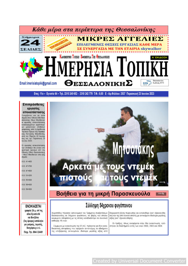 Αρχική ΘΕΣΣΑΛΟΝΙΚΗ Πρωτοσέλιδο Ημερήσια Τοπική 23/06/23 ΘΕΣΣΑΛΟΝΙΚΗΤΟΠΙΚΗ ΠΡΩΤΟΣΕΛΙΔΑ Πρωτοσέλιδο Ημερήσια Τοπική 23/06/23 Από ΜΑΡΙΑ ΓΙΑΝΝΕΛΟΥ - 28 Ιουνίου 2023 118 0 FacebookTwitterPinterestWhatsApp