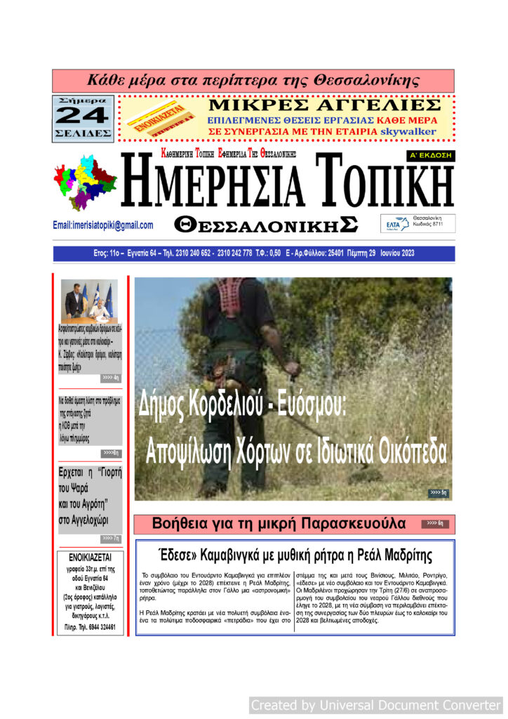 Αρχική ΘΕΣΣΑΛΟΝΙΚΗ Πρωτοσέλιδο Ημερήσια Τοπική 29/06/23 ΘΕΣΣΑΛΟΝΙΚΗΤΕΛΕΥΤΑΙΑ ΝΕΑΤΟΠΙΚΗ ΠΡΩΤΟΣΕΛΙΔΑ Πρωτοσέλιδο Ημερήσια Τοπική 29/06/23 Από ΜΑΡΙΑ ΓΙΑΝΝΕΛΟΥ - 29 Ιουνίου 2023 113 0 FacebookTwitterPinterestWhatsApp