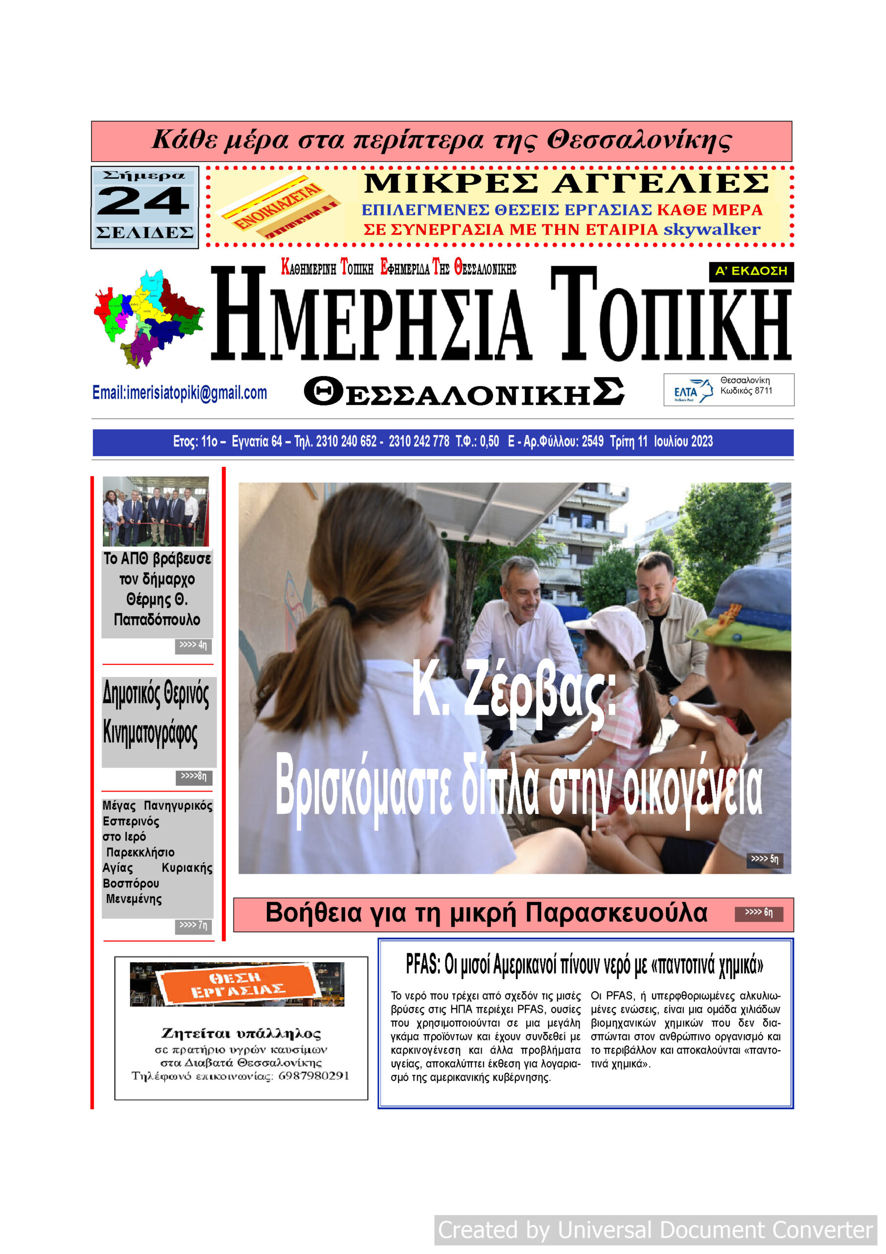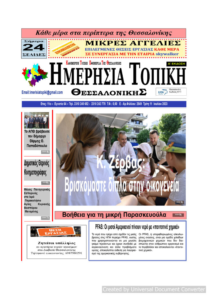 Αρχική ΘΕΣΣΑΛΟΝΙΚΗ Πρωτοσέλιδο Ημερήσια Τοπική 11/07/23 ΘΕΣΣΑΛΟΝΙΚΗΤΟΠΙΚΗ ΠΡΩΤΟΣΕΛΙΔΑ Πρωτοσέλιδο Ημερήσια Τοπική 11/07/23 Από ΜΑΡΙΑ ΓΙΑΝΝΕΛΟΥ - 17 Ιουλίου 2023 90 0 FacebookTwitterPinterestWhatsApp