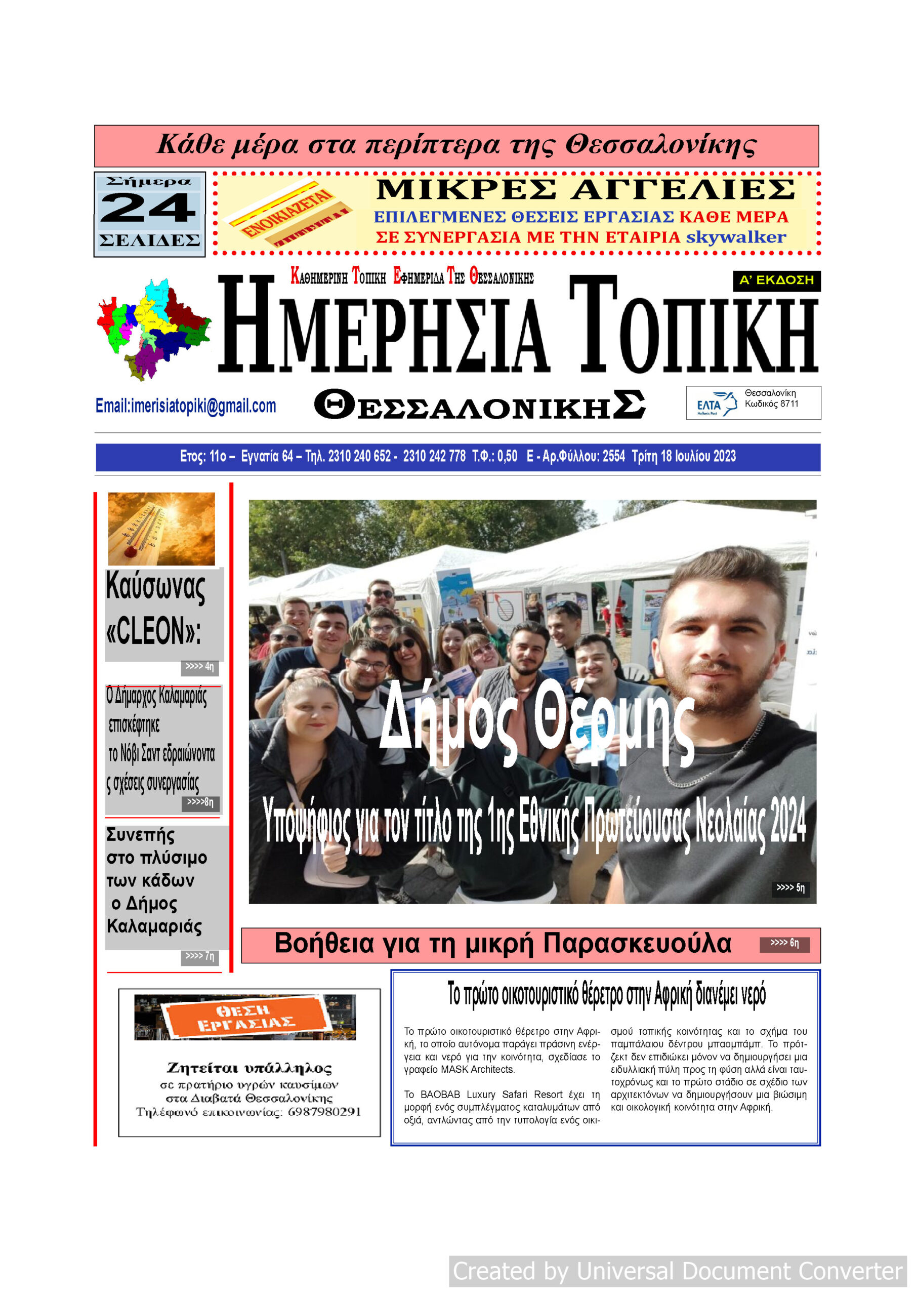 Αρχική ΘΕΣΣΑΛΟΝΙΚΗ Πρωτοσέλιδο Ημερήσια Τοπική 18/07/23 ΘΕΣΣΑΛΟΝΙΚΗΤΟΠΙΚΗ ΠΡΩΤΟΣΕΛΙΔΑ Πρωτοσέλιδο Ημερήσια Τοπική 18/07/23 Από ΜΑΡΙΑ ΓΙΑΝΝΕΛΟΥ - 21 Ιουλίου 2023 87 0 FacebookTwitterPinterestWhatsApp