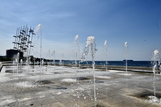 Εντυπωσιάζουν οι εικόνες από την περιοχή της νέας παραλίας, καθώς ο Δήμος Θεσσαλονίκης έθεσε σε δοκιμαστική λειτουργία τα σιντριβάνια δίπλα από τις «Ομπρέλες» του Γιώργου Ζογγολόπουλου. Η επισκευή των σιντριβανιών εντάσσεται στο πλαίσιο του μεγάλου έργου συντήρησης της νέας παραλίας, που βρίσκεται σε πλήρη εξέλιξη.
