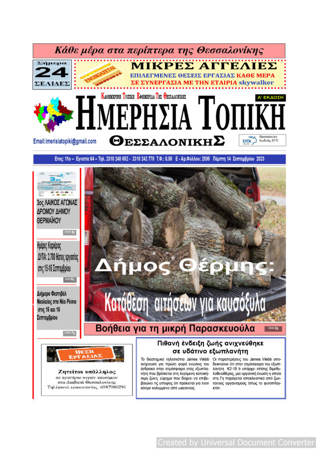 Αρχική ΘΕΣΣΑΛΟΝΙΚΗ Πρωτοσέλιδο Ημερήσια Τοπική 14/09/23 ΘΕΣΣΑΛΟΝΙΚΗΤΟΠΙΚΗ ΠΡΩΤΟΣΕΛΙΔΑ Πρωτοσέλιδο Ημερήσια Τοπική 14/09/23 Από ΜΑΡΙΑ ΓΙΑΝΝΕΛΟΥ - 18 Σεπτεμβρίου 2023 130 0 FacebookTwitterPinterestWhatsApp