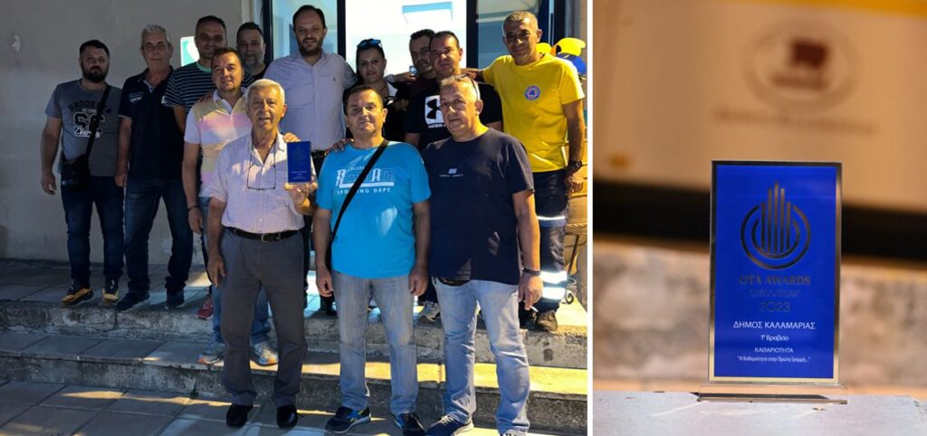 Ο σχεδιασμός και η υλοποίηση του προγράμματος του Δήμου Καλαμαριάς στον τομέα της καθαριότητας επιβραβεύτηκε, με το χρυσό βραβείο από το ΟΤΑ Awards, ανάμεσα σε 332 δήμους, στην Ελλάδα καθαρή πόλη 2023, «Καθαριότητα στην πρώτη γραμμή».