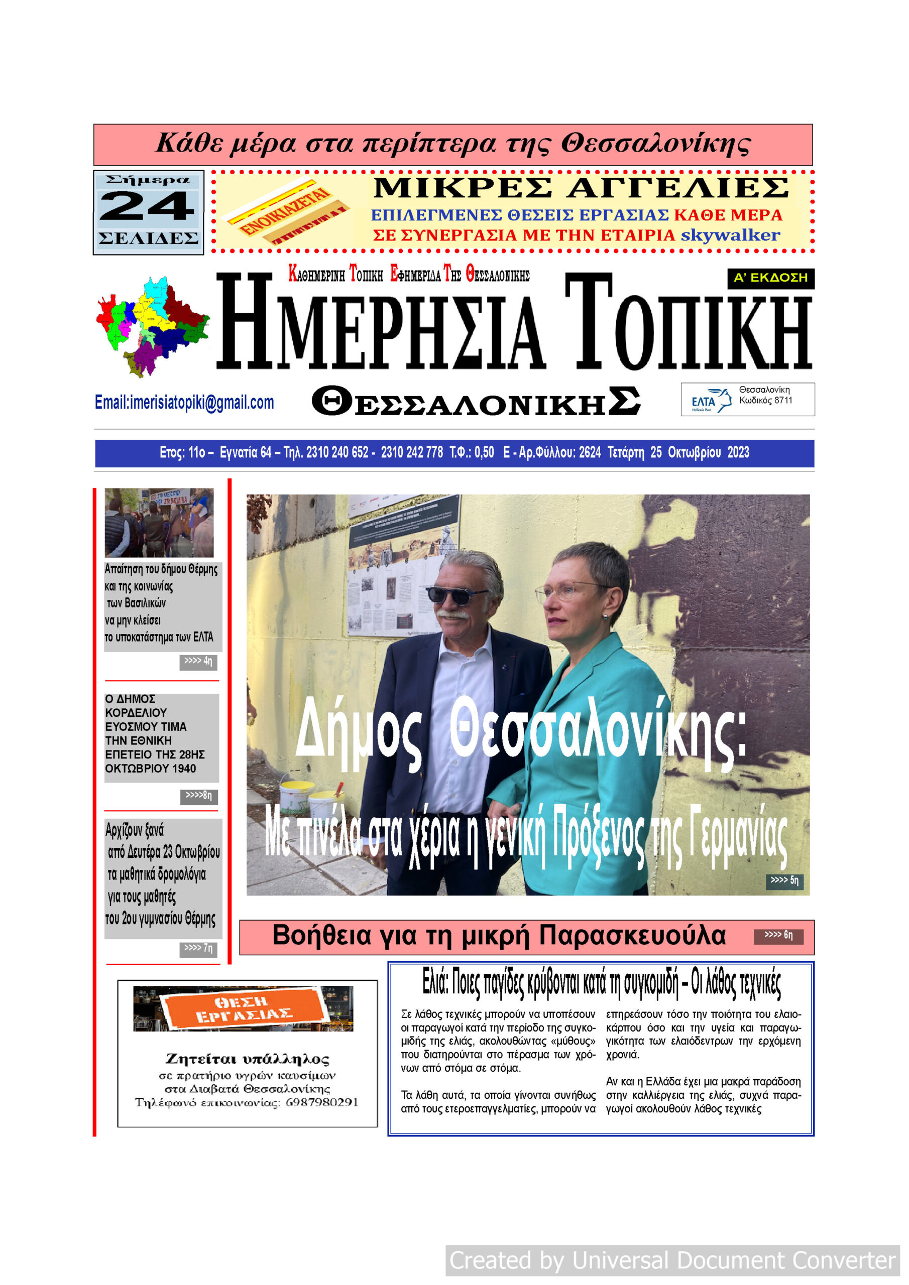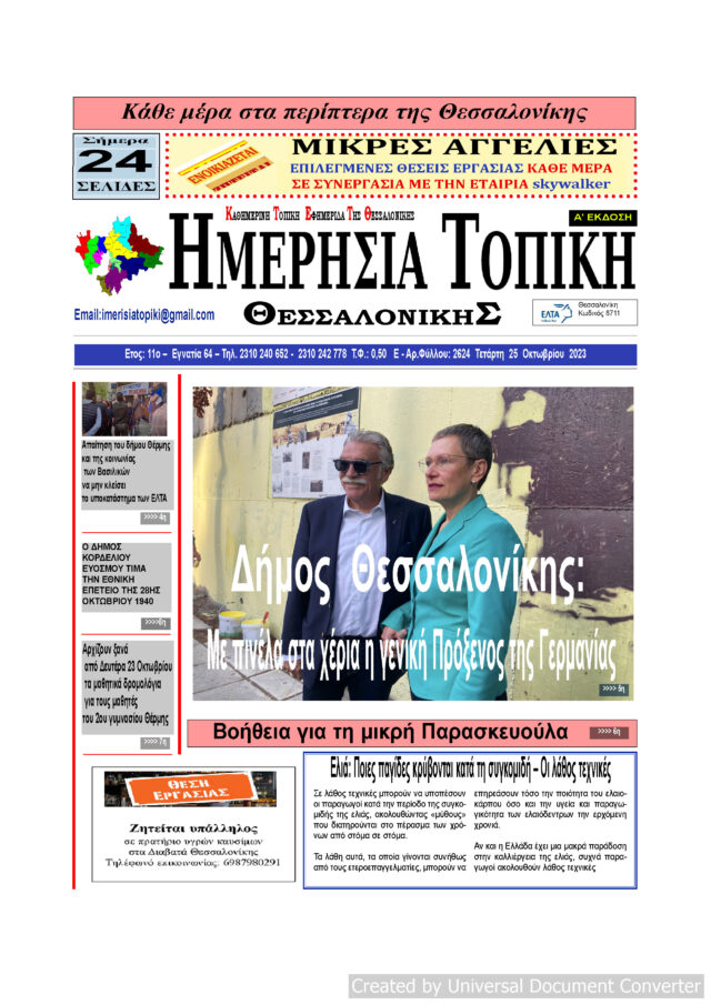 Αρχική ΘΕΣΣΑΛΟΝΙΚΗ Πρωτοσέλιδο Ημερήσια Τοπική 25/10/23 ΘΕΣΣΑΛΟΝΙΚΗΤΟΠΙΚΗ ΠΡΩΤΟΣΕΛΙΔΑ Πρωτοσέλιδο Ημερήσια Τοπική 25/10/23 Από ΜΑΡΙΑ ΓΙΑΝΝΕΛΟΥ - 30 Οκτωβρίου 2023 139 0 FacebookTwitterPinterestWhatsApp