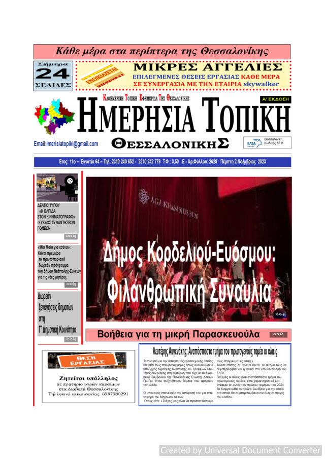 Αρχική ΘΕΣΣΑΛΟΝΙΚΗ Πρωτοσέλιδο Ημερήσια Τοπική 02/11/23 ΘΕΣΣΑΛΟΝΙΚΗΤΟΠΙΚΗ ΠΡΩΤΟΣΕΛΙΔΑ Πρωτοσέλιδο Ημερήσια Τοπική 02/11/23 Από ΜΑΡΙΑ ΓΙΑΝΝΕΛΟΥ - 7 Νοεμβρίου 2023 77 0 FacebookTwitterPinterestWhatsApp