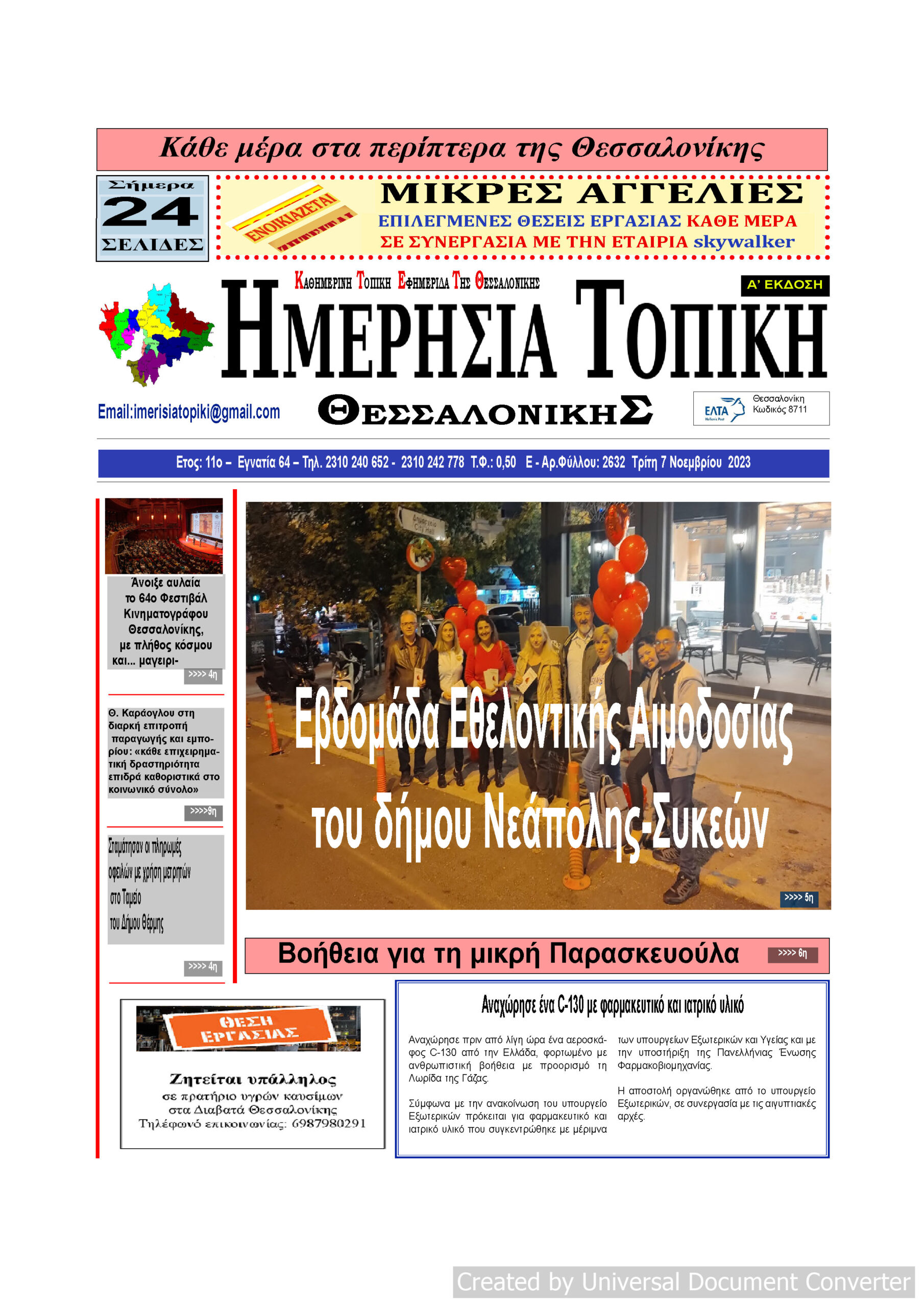 Αρχική ΘΕΣΣΑΛΟΝΙΚΗ Πρωτοσέλιδο Ημερήσια Τοπική 07/11/23 ΘΕΣΣΑΛΟΝΙΚΗΤΟΠΙΚΗ ΠΡΩΤΟΣΕΛΙΔΑ Πρωτοσέλιδο Ημερήσια Τοπική 07/11/23 Από ΜΑΡΙΑ ΓΙΑΝΝΕΛΟΥ - 10 Νοεμβρίου 2023 141 0 FacebookTwitterPinterestWhatsApp