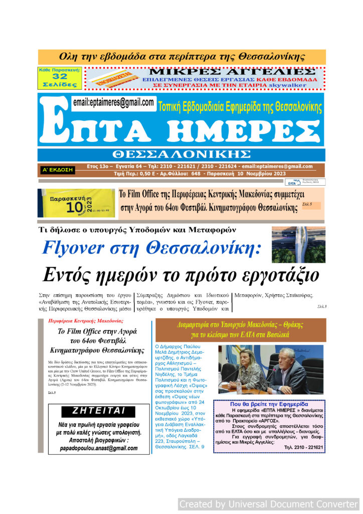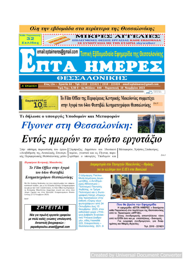 Αρχική ΕΠΤΑ ΗΜΕΡΕΣ ΠΡΩΤΟΣΕΛΙΔΑ Πρωτοσέλιδο Επτά Ημέρες 10/11/23 ΕΠΤΑ ΗΜΕΡΕΣ ΠΡΩΤΟΣΕΛΙΔΑΘΕΣΣΑΛΟΝΙΚΗ Πρωτοσέλιδο Επτά Ημέρες 10/11/23 Από ΜΑΡΙΑ ΓΙΑΝΝΕΛΟΥ - 10 Νοεμβρίου 2023 215 0 FacebookTwitterPinterestWhatsApp
