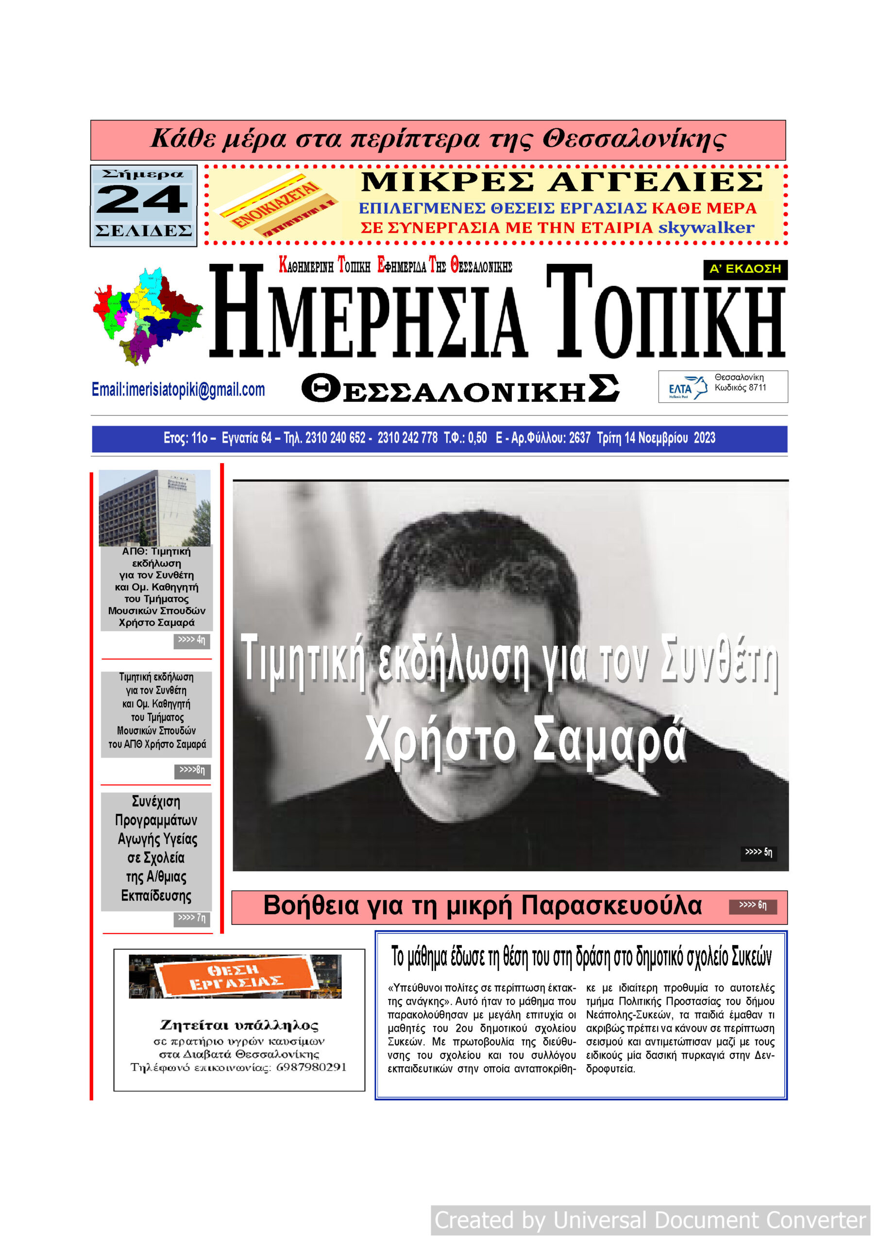 Αρχική ΘΕΣΣΑΛΟΝΙΚΗ Πρωτοσέλιδο Ημερήσια Τοπική 14/11/23 ΘΕΣΣΑΛΟΝΙΚΗΤΟΠΙΚΗ ΠΡΩΤΟΣΕΛΙΔΑ Πρωτοσέλιδο Ημερήσια Τοπική 14/11/23 Από ΜΑΡΙΑ ΓΙΑΝΝΕΛΟΥ - 17 Νοεμβρίου 2023 157 0 FacebookTwitterPinterestWhatsApp