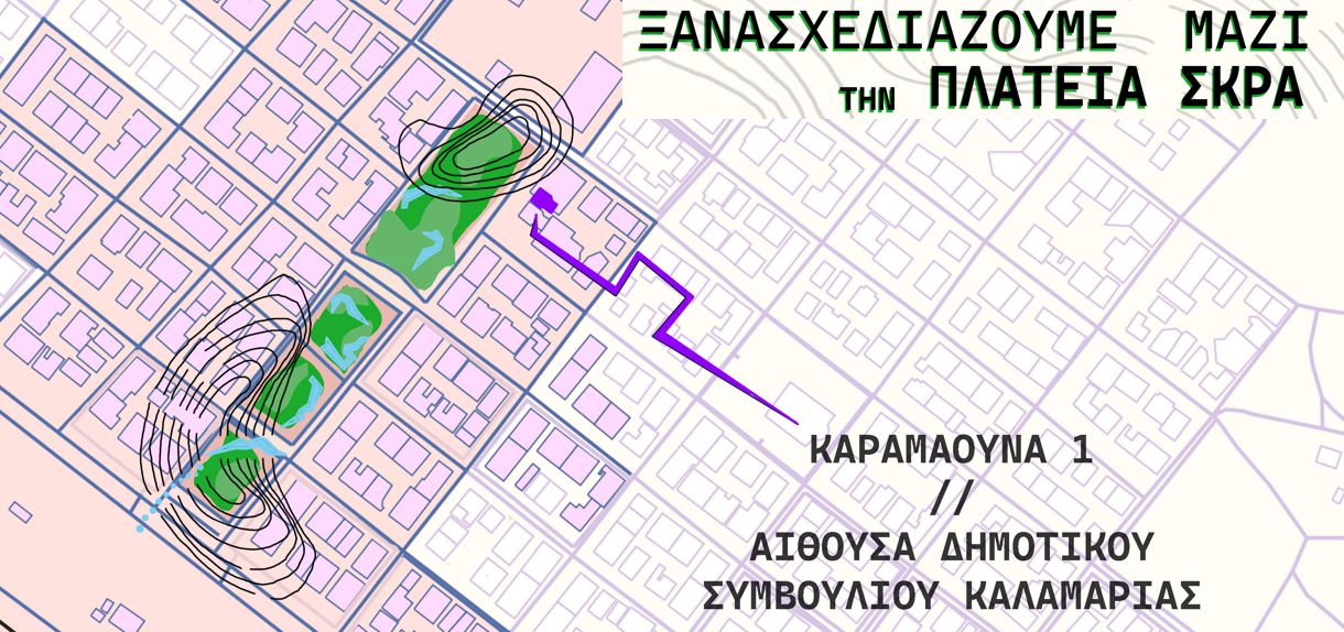 Το 1ο Εργαστήριο Συμμετοχικού Σχεδιασμού για την πλατεία Σκρα θα πραγματοποιηθεί την Κυριακή 3 Δεκεμβρίου, 11:00 – 14:00 στην αίθουσα του Δημοτικού Συμβουλίου, Καραμαούνα 1, δίπλα στο ΚΕΠ, πάνω στην πλατεία. Εκεί θα συζητηθούν οι ανάγκες και τα προβλήματα της πλατείας, όπως είναι σήμερα, οι επιθυμίες και τις ιδέες των πολιτών, για το τι πρέπει ν’ αλλάξει στο μέλλον.