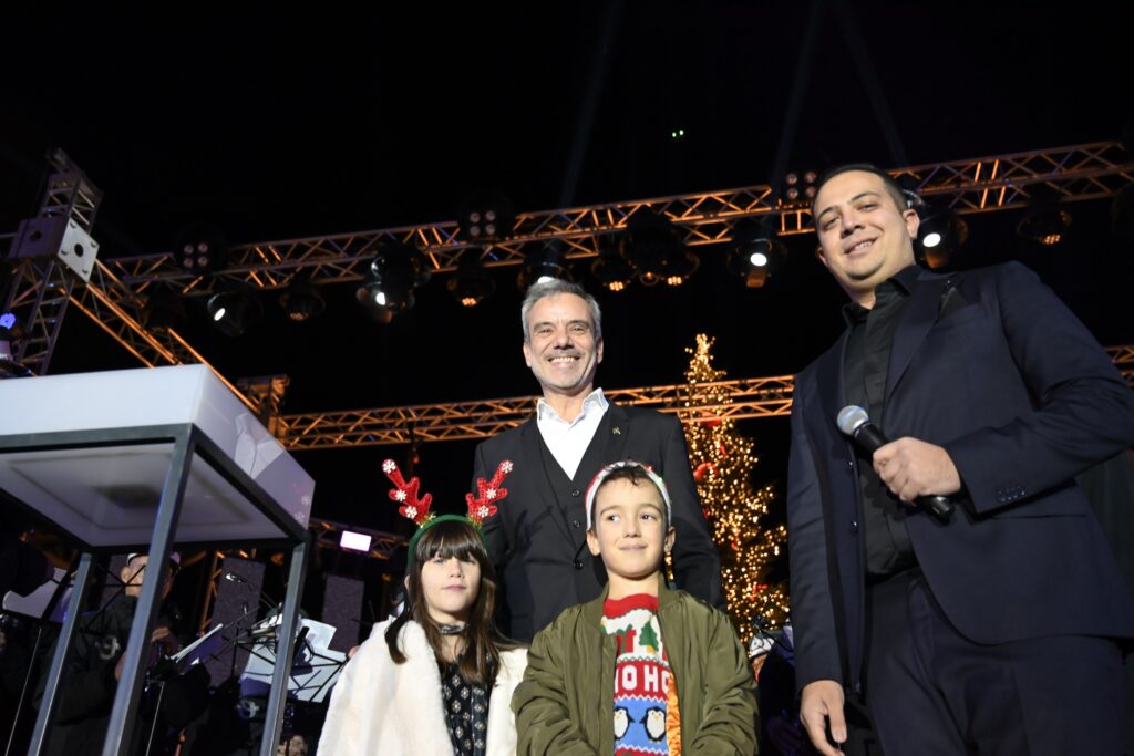 Ο Δήμαρχος Θεσσαλονίκης, που πάτησε το κουμπί, για να ανάψει το δέντρο μαζί με τη μικρή Μαργαρίτα και τον μικρό Διαμαντή, μετέφερε θερμές ευχές για καλές γιορτές και εξέφρασε τις ευχαριστίες του προς τους εργαζόμενους του Δήμου, αλλά και προς τους χορηγούς που υποστηρίζουν τις εορταστικές εκδηλώσεις.