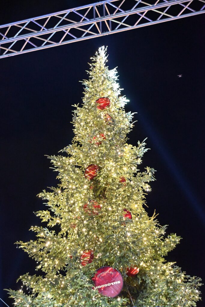 Το χριστουγεννιάτικο δέντρο που στήθηκε στην πλατεία Αριστοτέλους είναι ύψους 17 μέτρων, μεταφέρθηκε από το Παλαιοχώρι Χαλκιδικής και στολίστηκε με 100.000 γιορτινά λαμπιόνια, χαμηλής ενεργειακής κατανάλωσης.
