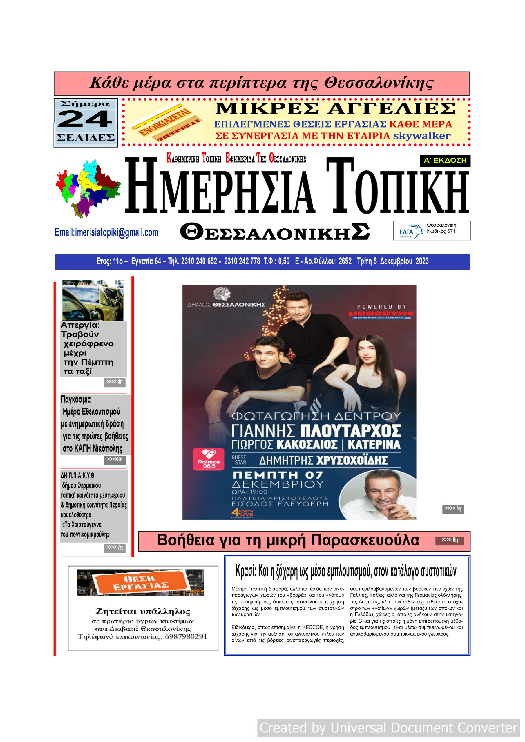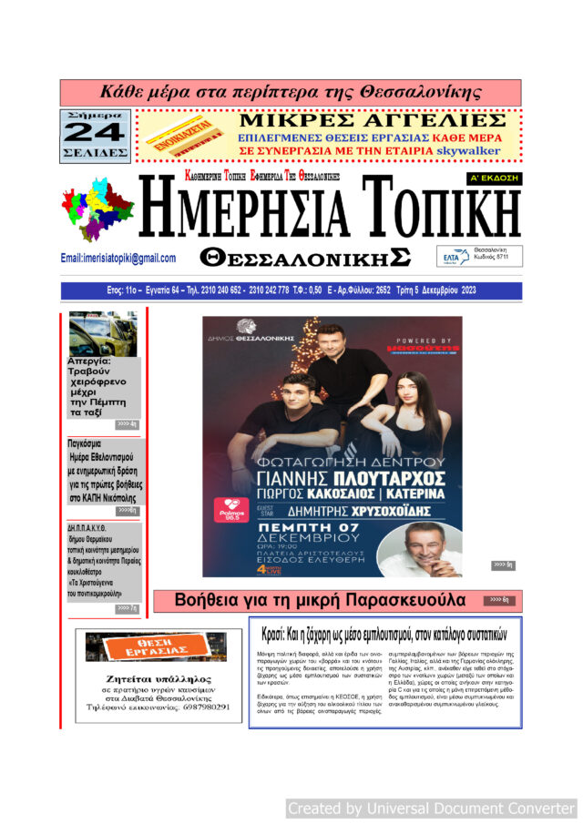 Αρχική ΘΕΣΣΑΛΟΝΙΚΗ Πρωτοσέλιδο Ημερήσια Τοπική 05/12/23 ΘΕΣΣΑΛΟΝΙΚΗΤΟΠΙΚΗ ΠΡΩΤΟΣΕΛΙΔΑ Πρωτοσέλιδο Ημερήσια Τοπική 05/12/23 Από ΜΑΡΙΑ ΓΙΑΝΝΕΛΟΥ - 8 Δεκεμβρίου 2023 128 0 FacebookTwitterPinterestWhatsApp