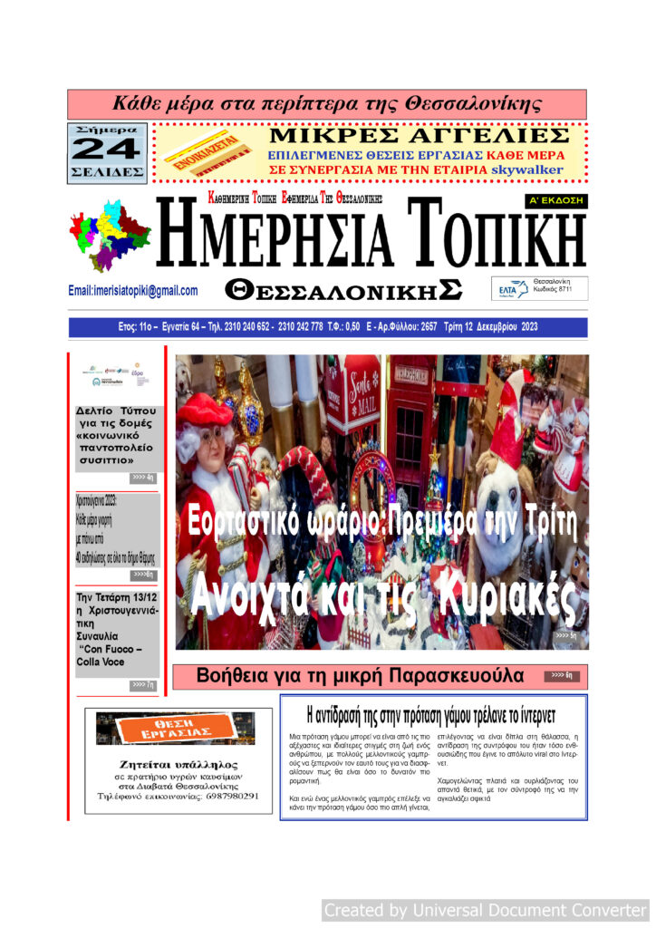 Αρχική ΘΕΣΣΑΛΟΝΙΚΗ Πρωτοσέλιδο Ημερήσια Τοπική 12/12/23 ΘΕΣΣΑΛΟΝΙΚΗΤΟΠΙΚΗ ΠΡΩΤΟΣΕΛΙΔΑ Πρωτοσέλιδο Ημερήσια Τοπική 12/12/23 Από ΜΑΡΙΑ ΓΙΑΝΝΕΛΟΥ - 15 Δεκεμβρίου 2023 148 0 FacebookTwitterPinterestWhatsApp