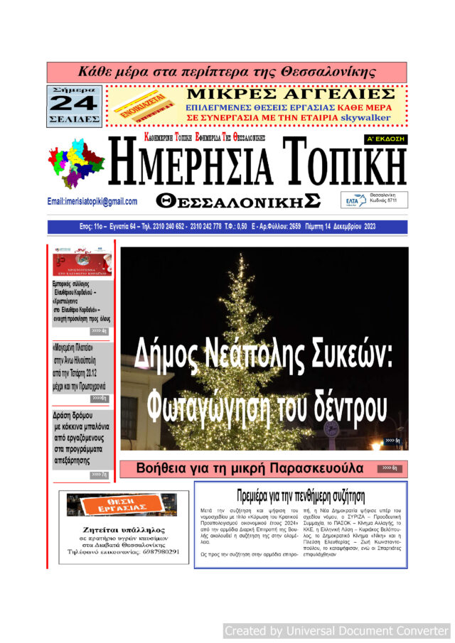 Αρχική ΘΕΣΣΑΛΟΝΙΚΗ Πρωτοσέλιδο Ημερήσια Τοπική 14/12/23 ΘΕΣΣΑΛΟΝΙΚΗΤΟΠΙΚΗ ΠΡΩΤΟΣΕΛΙΔΑ Πρωτοσέλιδο Ημερήσια Τοπική 14/12/23 Από ΜΑΡΙΑ ΓΙΑΝΝΕΛΟΥ - 15 Δεκεμβρίου 2023 99 0 FacebookTwitterPinterestWhatsApp