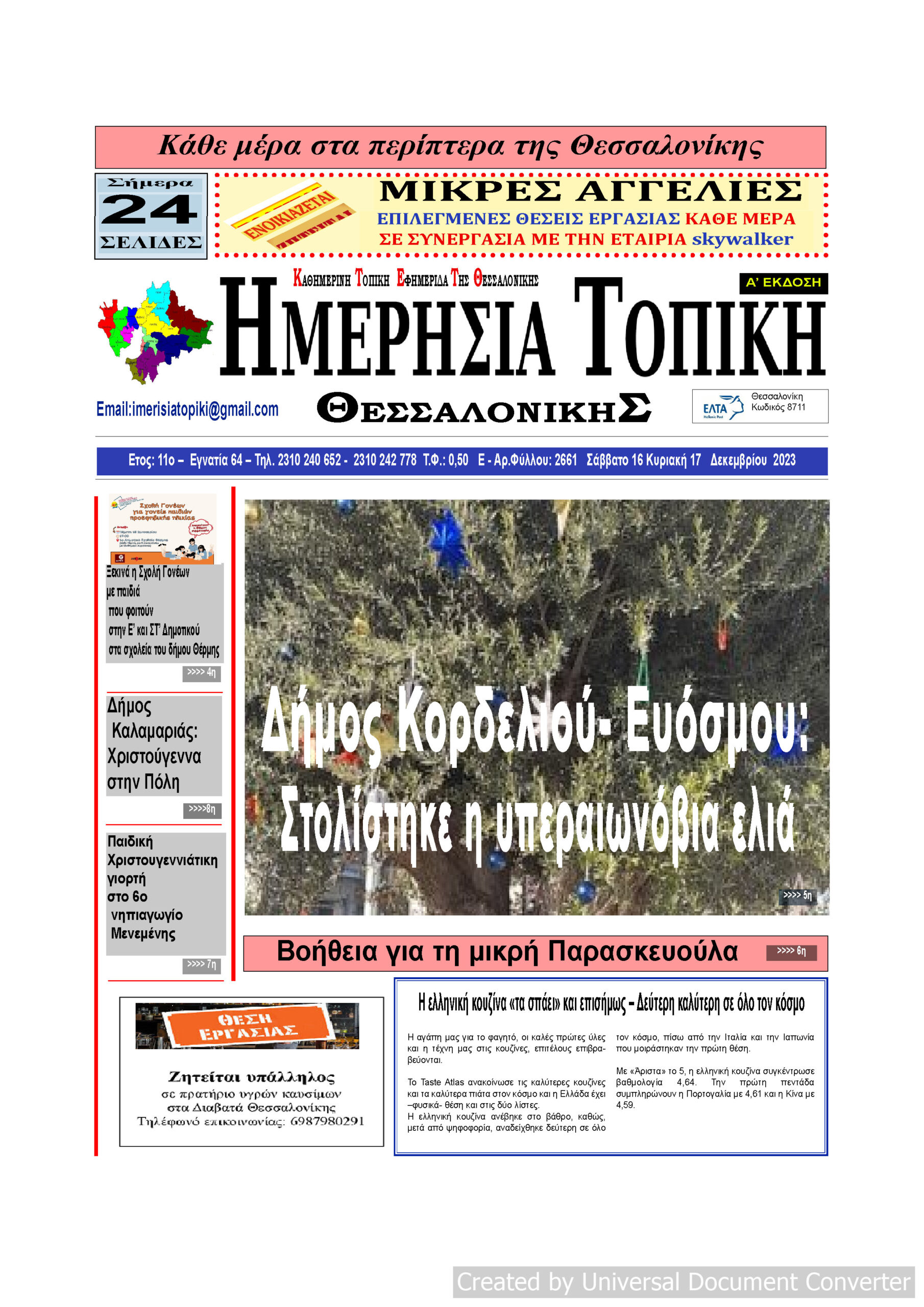 Αρχική ΘΕΣΣΑΛΟΝΙΚΗ Πρωτοσέλιδο Ημερήσια Τοπική 16/12/23 – 17/12/23 ΘΕΣΣΑΛΟΝΙΚΗΤΟΠΙΚΗ ΠΡΩΤΟΣΕΛΙΔΑ Πρωτοσέλιδο Ημερήσια Τοπική 16/12/23 – 17/12/23 Από ΜΑΡΙΑ ΓΙΑΝΝΕΛΟΥ - 16 Δεκεμβρίου 2023 151 0 FacebookTwitterPinterestWhatsApp