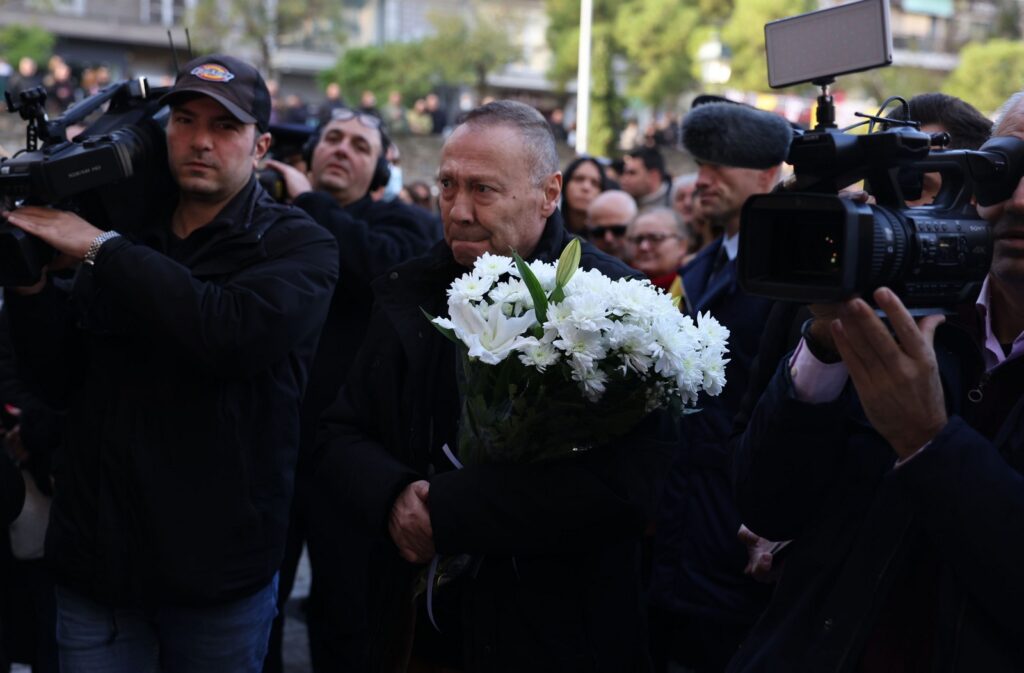 Κρατώντας λευκά λουλούδια, φίλοι και θαυμαστές είχαν συγκεντρωθεί ήδη από τις 8 το πρωί στην εκκλησία, ώστε να αποτίσουν φόρο τιμής, στον αγαπημένο λαϊκό τραγουδιστή.