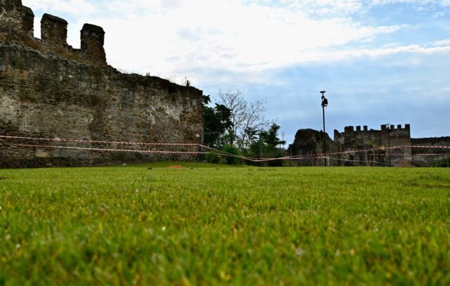 Η ζώνη ανάμεσα στην οδό Ακροπόλεως και την Παλαμίδου, απέναντι από τη Μονή Βλατάδων, πρασινίζει, με τα βυζαντινά τείχη να αναδεικνύονται και τον δημόσιο χώρο να αναβαθμίζεται.